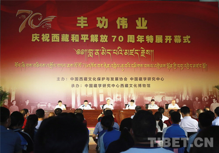 中國(guó)西藏網(wǎng)訊 2021年6月29日,由中國(guó)西藏文化保護(hù)與發(fā)展協(xié)會(huì)、中國(guó)藏學(xué)研究中心主辦的“豐功偉業(yè)——慶祝西藏和平解放70周年特展”在中國(guó)藏學(xué)研究中心西藏文化博物館開(kāi)幕。中國(guó)西藏文化保護(hù)與發(fā)展協(xié)會(huì)副會(huì)長(zhǎng)斯塔、中國(guó)藏學(xué)研究中心黨組書(shū)記陳宗榮出席開(kāi)幕式并致辭。中國(guó)藏學(xué)研究中心總干事鄭堆主持開(kāi)幕式。中央宣傳部、中央統(tǒng)戰(zhàn)部相關(guān)同志和有關(guān)專家學(xué)者等百余人參加開(kāi)幕式。