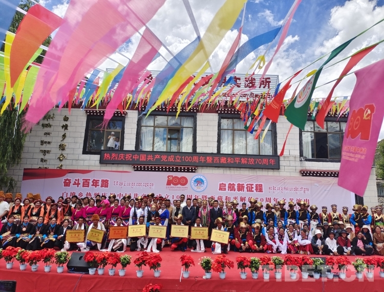 為慶祝中國共產(chǎn)黨成立100周年暨西藏和平解放70周年, 7月1日,白堆鄉(xiāng)還舉辦了第三屆民間文藝匯演??h民間藝術(shù)團(tuán)、各村文藝演出隊和鄉(xiāng)機(jī)關(guān)干部用舞蹈與歌聲展現(xiàn)出人們的美好生活以及對黨的感恩對祖國的熱愛。通過精彩的文藝節(jié)目,弘揚(yáng)奮斗精神,謳歌黨的光輝歷程。