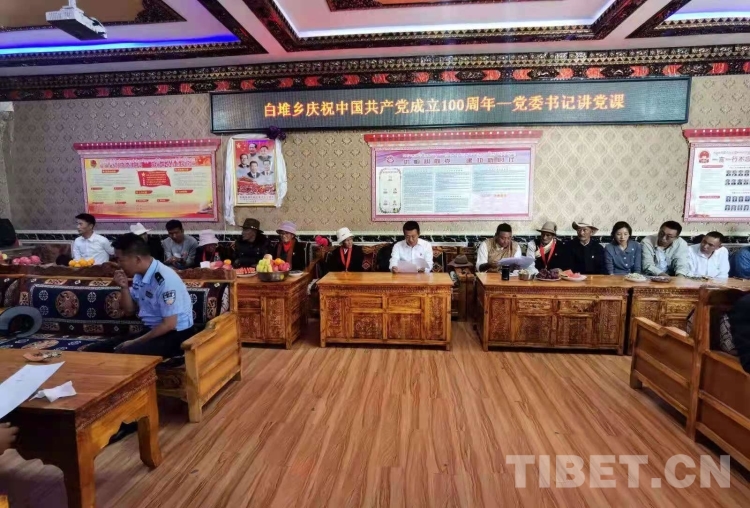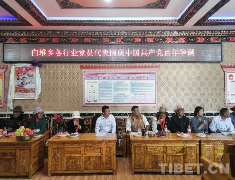 圖為西藏山南白堆鄉(xiāng)7月1日黨員座談會