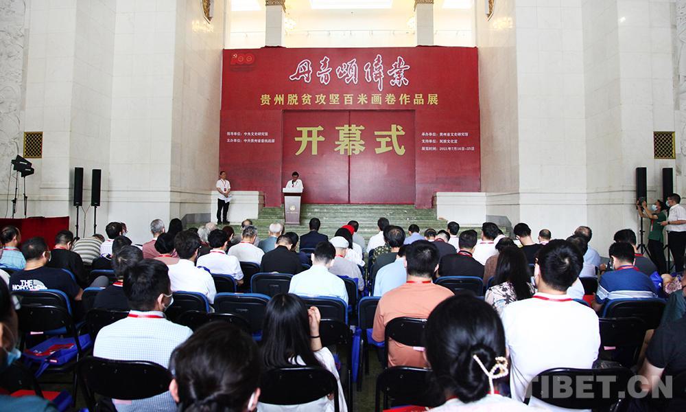 中國(guó)西藏網(wǎng)訊 7月16日,由中央文史研究館指導(dǎo)、貴州省委統(tǒng)戰(zhàn)部主辦,貴州省文史研究館承辦的《丹青頌偉業(yè)——貴州“脫貧攻堅(jiān)”百米畫卷》主題展覽在北京民族文化宮隆重開(kāi)幕。