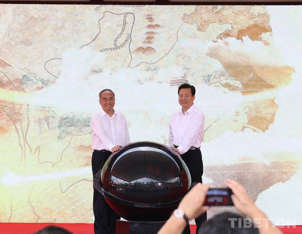 圖為文化和旅游部副部長、國家文物局局長李群(右)和山西省委書記林武為特展揭幕
