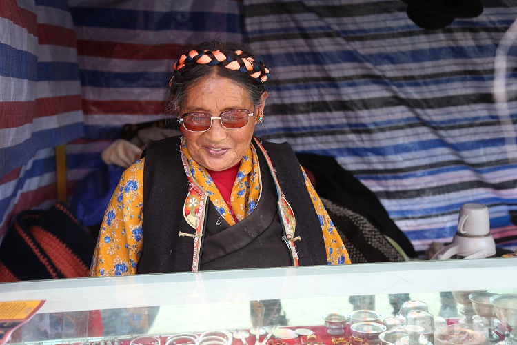 已近古稀之年的羅布和央金從1992年起,便年年參加打隆物交會。款式多、口碑好,純手工鍛造,再加上30年的堅(jiān)守。讓他們經(jīng)營民族首飾的攤位成為了打隆物交會的必去“打卡地”之一。