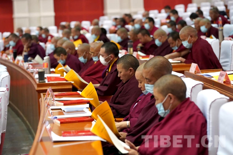 班禪強調,要將闡釋成果充分運用到宣講中,深入開展大眾化闡釋,以愛國主義精神鼓舞僧尼和信教群眾,以團結進步、積極向上的精神引導僧尼和信教群眾,以高尚的情操教育僧尼和信教群眾,力求使闡釋工作更加符合我國社會發(fā)展要求,更加貼近藏傳佛教實際,更加深入廣大寺廟僧尼和信教群眾的生活。