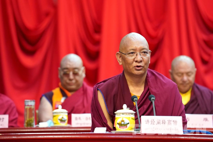 區(qū)黨委常委、統(tǒng)戰(zhàn)部部長,區(qū)政協(xié)黨組副書記、副主席旦科代表西藏自治區(qū)黨委、政府在會上講話時說,2016年以來,中國佛教協(xié)會西藏分會按照中央的部署和區(qū)黨委的要求,每年都舉辦藏傳佛教講經闡釋交流會,對藏傳佛教經典和教義教規(guī)作出符合時代進步、社會發(fā)展、信眾需要的理論闡釋,并面向信眾進行宣講,取得了重要成果,產生了廣泛的影響,積累了寶貴經驗,藏傳佛教中國化邁出了實質性步伐。全區(qū)藏傳佛教界代表人士自覺以習近平新時代中國特色社會主義思想和社會主義核心價值觀為引領,弘揚中華優(yōu)秀傳統(tǒng)文化,對藏傳佛教教義教規(guī)作出時代化、大眾化的新闡釋,展示了深厚的宗教造詣、愛黨愛國愛人民領袖的真摯情懷和走中國特色社會主義道路的堅定決心。
