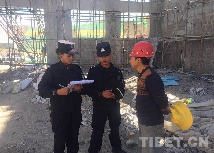 圖為王江鵬和尼瑪普赤在工地排查