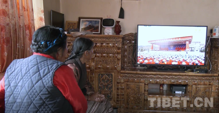 圖為阿里地區(qū)各族群眾正在收聽收看慶祝慶祝大會(huì)實(shí)況 來源:阿里廣播電視臺(tái)