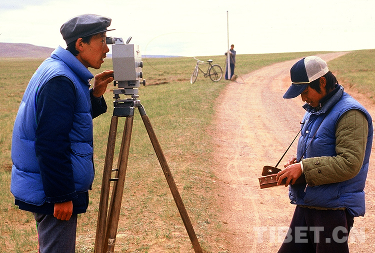 這是陜西省國家土地管理局科研人員利用衛(wèi)星遙感技術(shù)幫助西藏那曲地區(qū)(現(xiàn)那曲市)進行土壤普查(唐召明1987年攝)