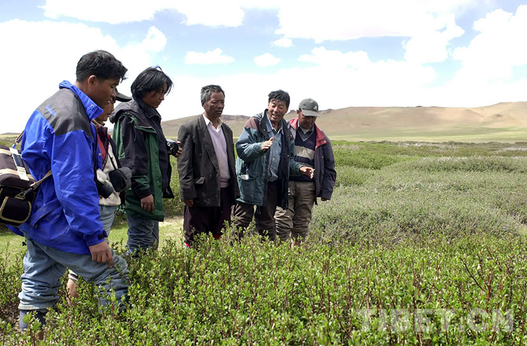 這是藏北無人區(qū)科考團科考人員在班戈縣保吉鄉(xiāng)新發(fā)現(xiàn)的大片山柳灌木叢。它是迄今為止所發(fā)現(xiàn)的世界上海拔最高的大片山柳灌木叢(唐召明2001年攝)