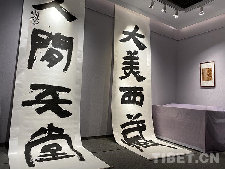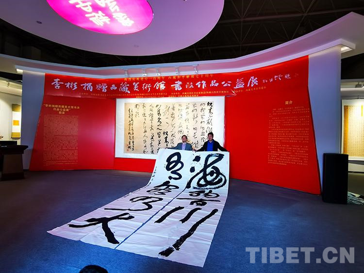 圖為李彬捐贈(zèng)西藏美術(shù)館書法作品公益展現(xiàn)場(chǎng) 攝影:王媛媛
