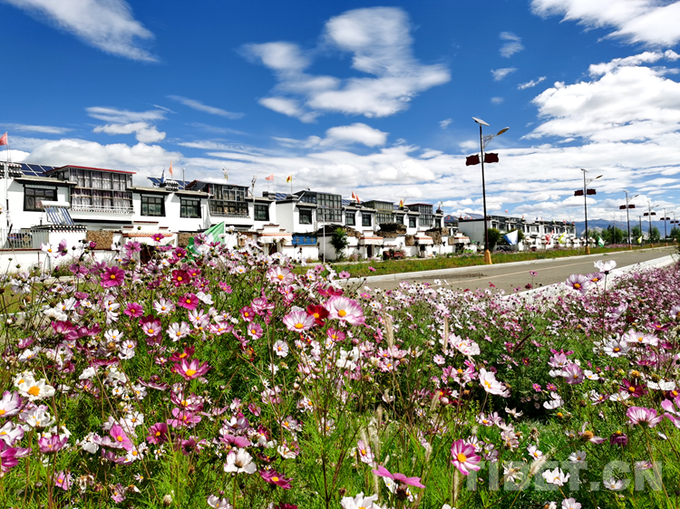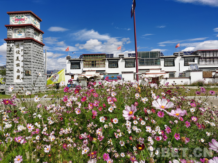中國(guó)西藏網(wǎng)訊 西藏自治區(qū)日喀則市桑珠孜區(qū)江當(dāng)鄉(xiāng)郭加新村,坐落在通往日喀則和平機(jī)場(chǎng)的拉日高速旁,一個(gè)鮮花盛開的搬遷村莊,錯(cuò)落有致的藏式二層小樓,富有民族特色的庭院廣場(chǎng),寬敞、整潔、一片祥和的安寧景象。