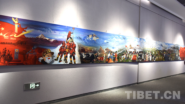 本次展覽藝術(shù)地再現(xiàn)了西藏和平解放70年來各方面取得的輝煌成就,青山綠水的自然景觀、多姿多彩的民族風(fēng)情、人民的幸福生活,是西藏自治區(qū)美術(shù)事業(yè)取得的豐碩成果。