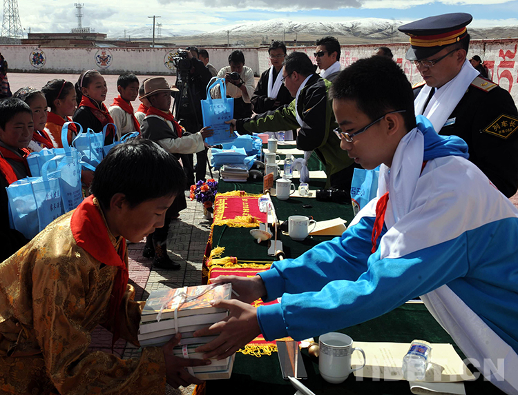 為了幫助西藏貧困地區(qū)的藏族孩子學(xué)到更多的科學(xué)文化知識(shí),豐富他們的業(yè)余文化生活,新華社北京分社在捐贈(zèng)中號(hào)召黨團(tuán)員積極參與,共捐藏漢文書籍1000多冊,并委托我將這些書送到西藏孩子手中。