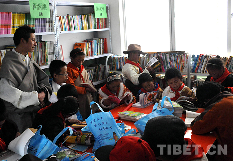 這是西藏那曲地區(qū)那曲縣(現(xiàn)那曲市色尼區(qū))羅瑪鎮(zhèn)中心小學(xué)學(xué)生在新建的“愛心書屋”讀書(唐召明2014年5月29日攝)