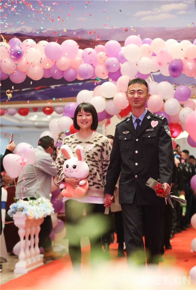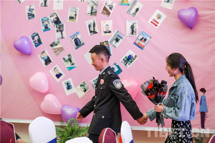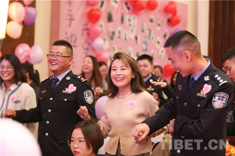 活動過程中,總站形象宣傳片《我是誰》,向女嘉賓們展現(xiàn)了西藏移民管理警察的職業(yè)特點,使女嘉賓對民警工作職責(zé)產(chǎn)生了初步的認(rèn)識。在主持人的引導(dǎo)下,精彩的才藝展示和豐富的游戲環(huán)節(jié)很快將現(xiàn)場氣氛推向一個接一個的高潮?;佑螒颉盃渴譅繍邸薄靶挠徐`犀”“守護愛情”“唯愛接力”通過聆聽詩句抓緊手指、借助比劃你問我答,相互協(xié)助完成任務(wù)等方式增進了男女嘉賓之間的了解和默契,促進了相互之間更好交流。男女嘉賓才藝表演和日喀則邊境管理支隊1753樂隊送上的精彩曲目,令活動現(xiàn)場青春洋溢。最終,18對男女嘉賓互生情愫,牽手成功,36對交換聯(lián)系方式,開啟更加深入的幸福交流。