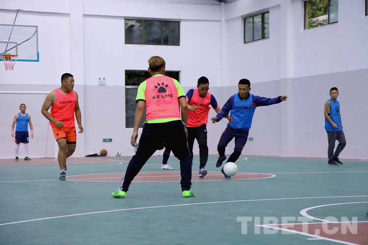 圖為五人制室內(nèi)足球娛樂(lè)賽現(xiàn)場(chǎng) 攝影:尼瑪?shù)ぴ?/span>