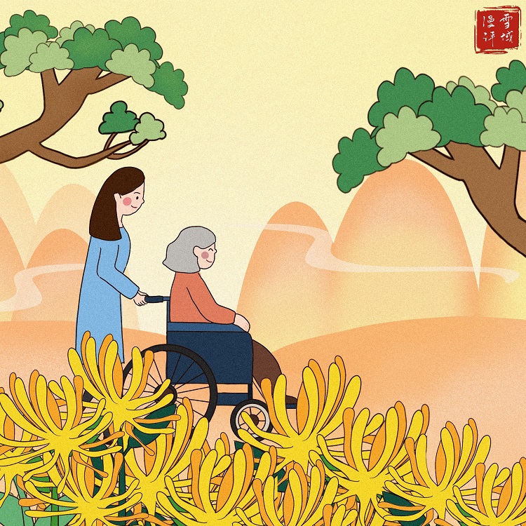 人生易老天難老,歲歲重陽,今又重陽?!罢l言寸草心,報(bào)得三春暉”“老吾老以及人之老”“天下之本在家”,尊敬老人、孝敬父母,敬老孝老正成為新時(shí)代中國(guó)的生動(dòng)生活場(chǎng)景。(中國(guó)西藏網(wǎng) 文/王智霖 繪/李絲雨)