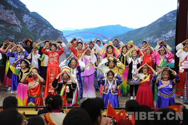活動(dòng)中,同學(xué)們用藏漢雙語傾情朗誦《石榴籽心連心,民族團(tuán)結(jié)一家親》,深情表達(dá)了對(duì)偉大祖國深沉熱烈的愛、對(duì)維護(hù)民族團(tuán)結(jié)堅(jiān)定的信心和決心。山南邊境管理支隊(duì)浪卡子邊境管理大隊(duì)教導(dǎo)員索朗達(dá)杰同志通過講述邊防部隊(duì)愛邊守邊、加強(qiáng)民族團(tuán)結(jié)的故事,將無數(shù)邊防戰(zhàn)士守衛(wèi)國境線、捍衛(wèi)國家領(lǐng)土、維護(hù)民族團(tuán)結(jié)的時(shí)代縮影呈現(xiàn)給大家;舞蹈《洗衣歌》生動(dòng)反映了軍民魚水深情;原雙湖縣中心小學(xué)教師、西藏自治區(qū)民族團(tuán)結(jié)先進(jìn)代表曹小花老師分享了自己在那曲雙湖縣堅(jiān)守12年基礎(chǔ)教育,踐行民族團(tuán)結(jié)的感人經(jīng)歷,在坐的師生深受感動(dòng);索朗頓珠同志講述了卓嘎、央宗姐妹作為“神圣國土的守護(hù)者”堅(jiān)守玉麥三人鄉(xiāng),踐行“國是中國 家是玉麥”的感人故事!在活動(dòng)中,56名同學(xué)身著各民族服裝伴著手語飽含深情地演繹了《國家》,用指尖唱出對(duì)家的依賴、國的熱愛;朗誦《請(qǐng)黨放心,強(qiáng)國有我》鏗鏘有力的展現(xiàn)了新一代西藏團(tuán)員青年在黨的領(lǐng)導(dǎo)下,加強(qiáng)民族團(tuán)結(jié)、建設(shè)美麗西藏的青春誓言!最后,活動(dòng)在全體團(tuán)員青年重溫入團(tuán)誓詞中結(jié)束。