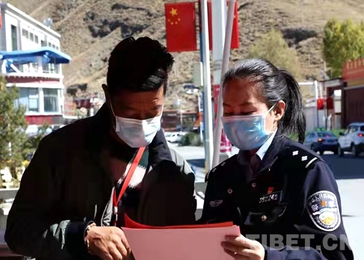 “出家門,戴口罩,少聚會,少串門,非常時期要留神。勤洗手,講衛(wèi)生,室內(nèi)開窗多通風。舊口罩,要收起,有害垃圾要處理……”民警珠央正在使用漢藏雙語向駐地群眾宣講防疫口訣。