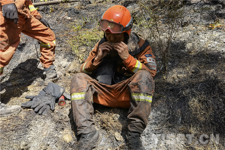 連日來,在火場上,席地而睡的消防員和寧吃干糧不拿群眾“一針一線”的消防員隨處可見。(中國西藏網(wǎng) 通訊員/張強 夏明勇)