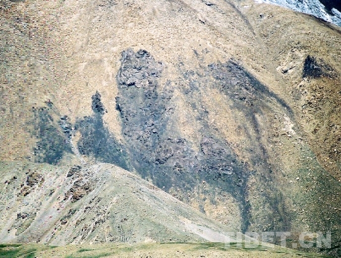 這是在藏北甲崗雪山巖壁上所拍攝的自然形成的“仙女牽馬”圖(唐召明2002年攝)