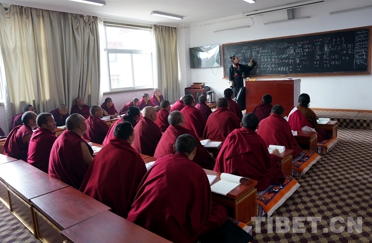 圖為佛學(xué)院學(xué)員在學(xué)習(xí)基礎(chǔ)文化知識(shí) 攝影:王淑