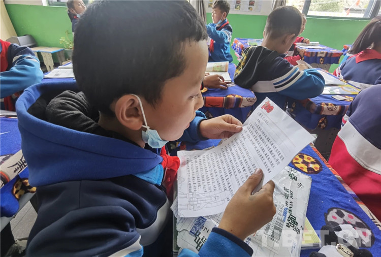 浪卡子縣卡熱鄉(xiāng)完小學(xué)生參與“滇藏、湘藏千里傳書信、學(xué)黨史”活動(dòng)。圖片由浪卡子縣供圖