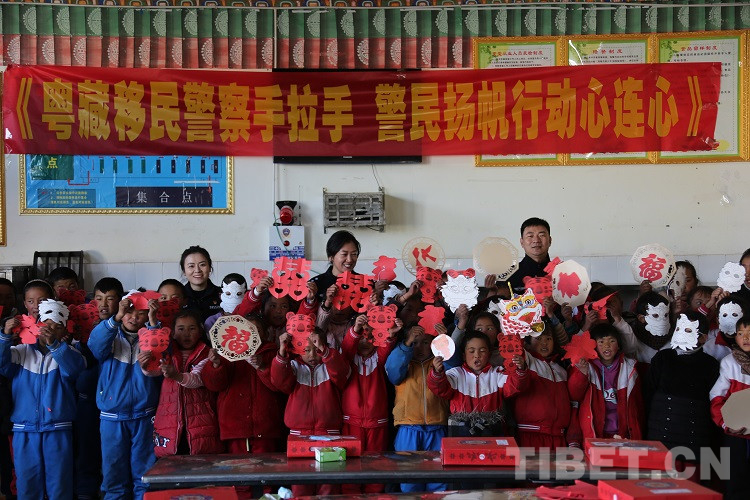 隨后,民警們?yōu)橥瑢W們發(fā)放了拉薩邊檢站和東莞邊檢站共同準備的兒童手工DIY禮盒,并和同學們一起完成剪紙手工制作,共同感受著中華傳統(tǒng)文化美學,體驗手工制作的樂趣。現(xiàn)場歡聲笑語,其樂融融。