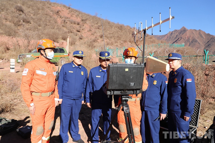 圖為貢覺縣駐防分隊(duì)救援人員攜裝匍匐前進(jìn)