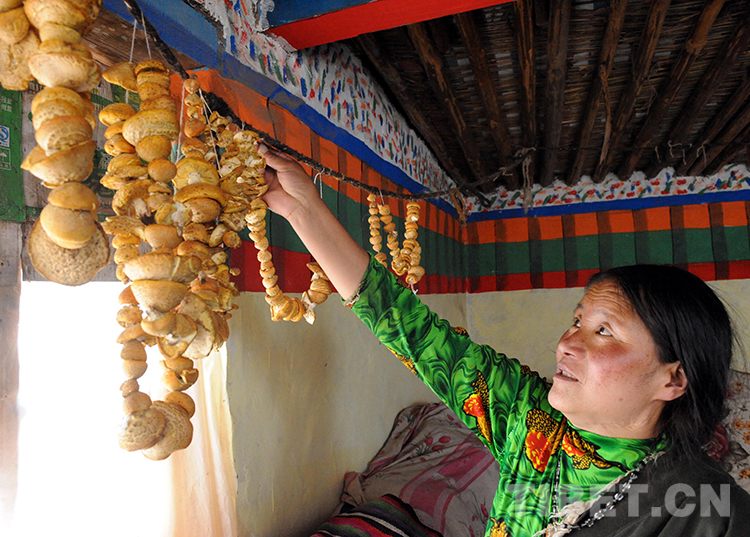 這是斯求卓瑪術(shù)后在當?shù)卣顿Y建設的安居房新家晾曬草原野生蘑菇(唐召明2012年8月3日攝)
