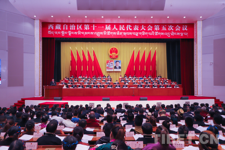 圖為西藏自治區(qū)十一屆人大五次會(huì)議第二次全體會(huì)議現(xiàn)場