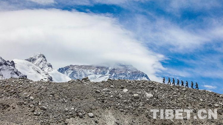圖為民警們在珠峰核心區(qū)域巡邏