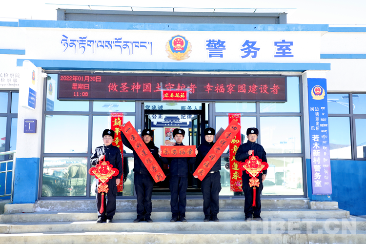 圖為日喀則邊境管理支隊崗巴邊境管理大隊若木新村警務(wù)室民警祝福全國人民新春快樂