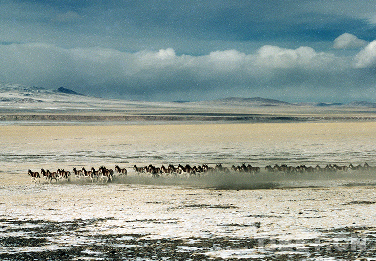 這是奔跑在羌塘國家級自然保護區(qū)的國家一級保護動物藏野驢(唐召明1987年攝)
