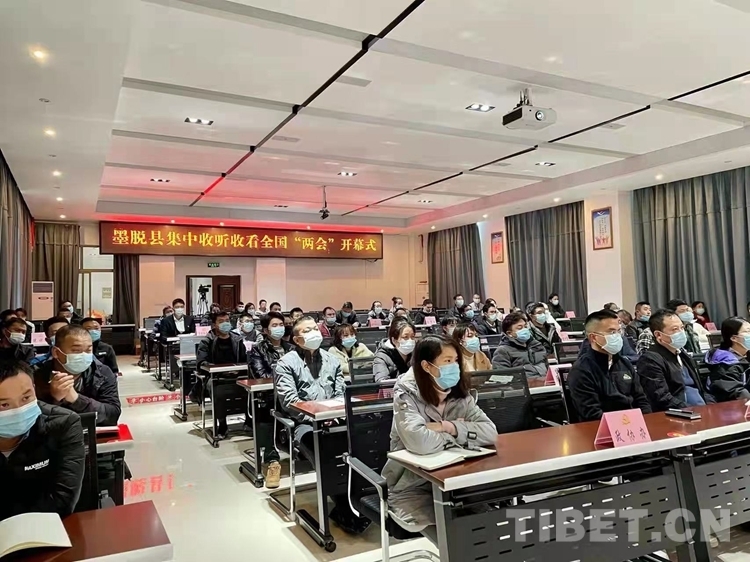 圖為西藏各地干部群眾收聽收看十三屆全國人大五次會(huì)議開幕會(huì)
