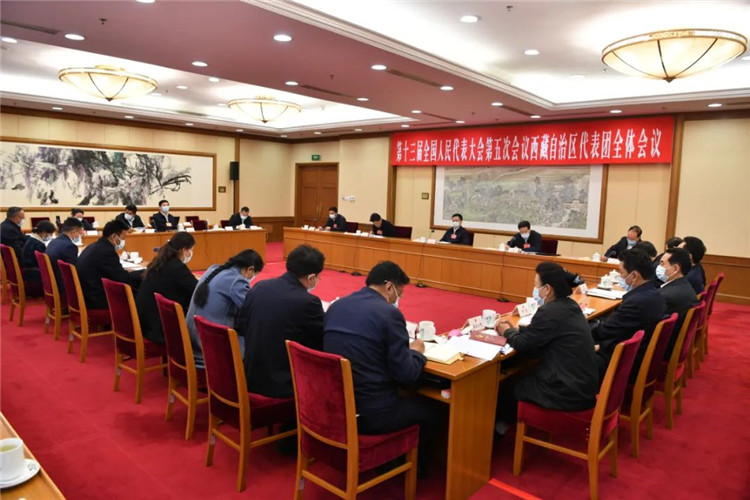 圖為3月8日下午,西藏自治區(qū)代表團(tuán)在駐地舉行全體會議,審議全國人大常委會工作報(bào)告。旦增西旦 攝