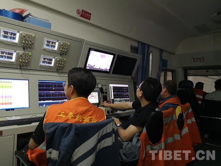 進入拉林鐵路前,機組人員對鋼軌探傷車檢測裝置、走行及制動系統(tǒng)進行了細致的檢查,對探傷系統(tǒng)及參數(shù)等進行調(diào)試。探傷車前端,兩名司機緊盯前方,負責運行;探傷操作臺前,副隊長張全福及4名探傷人員不斷調(diào)整相關參數(shù),連續(xù)6個小時對檢測過的鋼軌數(shù)據(jù)進行認真盯控,通過數(shù)據(jù)變化判斷鋼軌是否存在傷損。