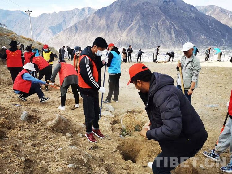 圖為西藏加查縣2022年度第二場(chǎng)全民義務(wù)植樹(shù)活動(dòng)