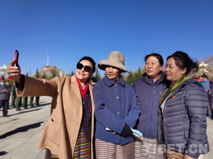 圖為參加“升國(guó)旗、唱國(guó)歌”儀式的群眾拍照留念 攝影:拉姆