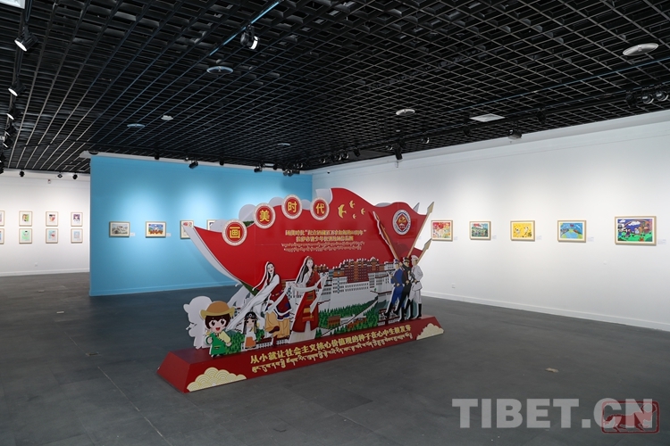 圖為畫美時代——“紀念西藏百萬農(nóng)奴解放63周年”拉薩市青少年優(yōu)秀繪畫作品展現(xiàn)場