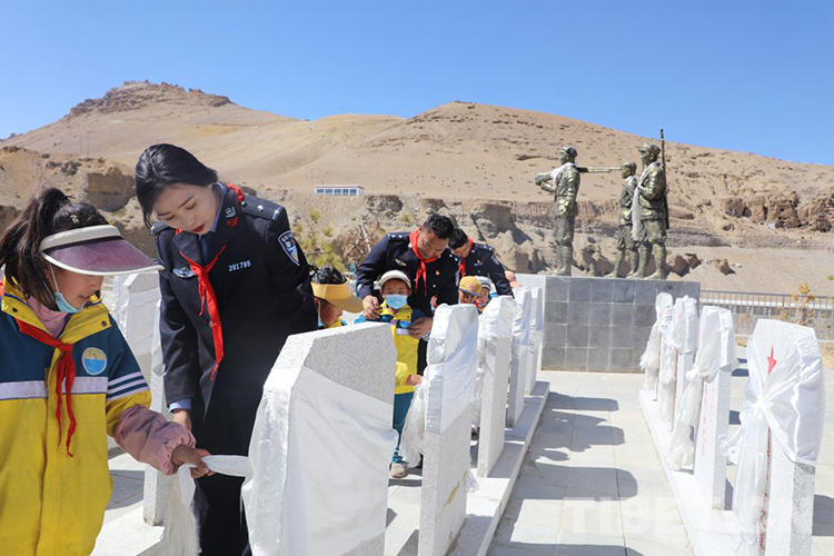 中國西藏網訊 青松翠柏守英烈,春風百花寄哀思。在清明節(jié)來臨之際,為傳承英烈遺志,弘揚英烈精神,4月2日,西藏普蘭出入境邊防檢查站民警與普蘭縣九年一貫制學校少先隊員們一起來到普蘭縣烈士陵園開展“清明祭英烈”活動。
