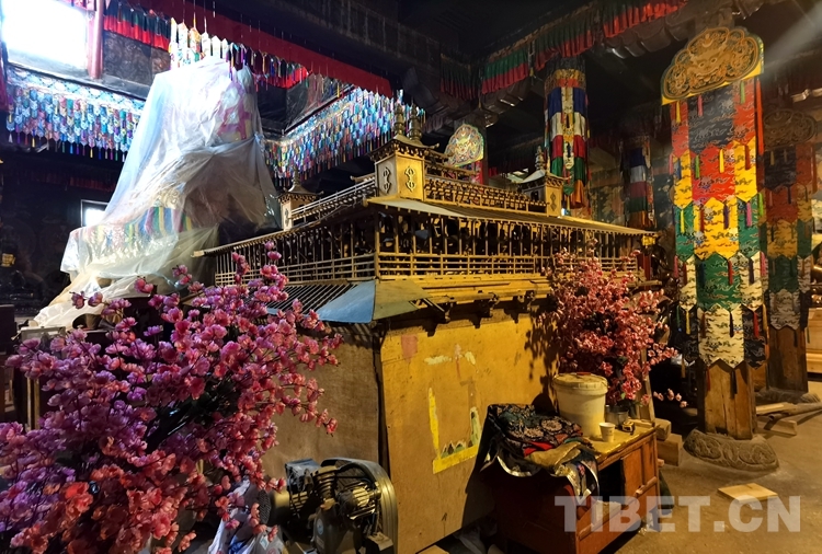 在沒有任何材料和文獻(xiàn)依據(jù)的背景下,木雅·曲吉建才翻遍了所有資料,終于找到了兩張老照片,一張1947年拍攝的外部全景的黑白照片,一張桑耶寺金頂內(nèi)部結(jié)構(gòu)一角的照片,這為修復(fù)桑耶寺金頂提供了參考。
