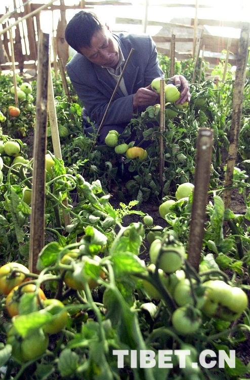 種植蔬菜的胡少南是位50多歲的復(fù)員軍人。他曾在四川農(nóng)村種過(guò)菜,幾年前到申扎縣做泥瓦匠的時(shí)候,看到這里群眾長(zhǎng)年吃不到新鮮蔬菜,便萌發(fā)了種植大棚蔬菜的想法。于是,他投資20多萬(wàn)元建起了蔬菜大棚。用羊糞作肥料,通過(guò)燒火來(lái)提高棚內(nèi)溫度,逐漸解決了高海拔地區(qū)種植蔬菜難的問(wèn)題。