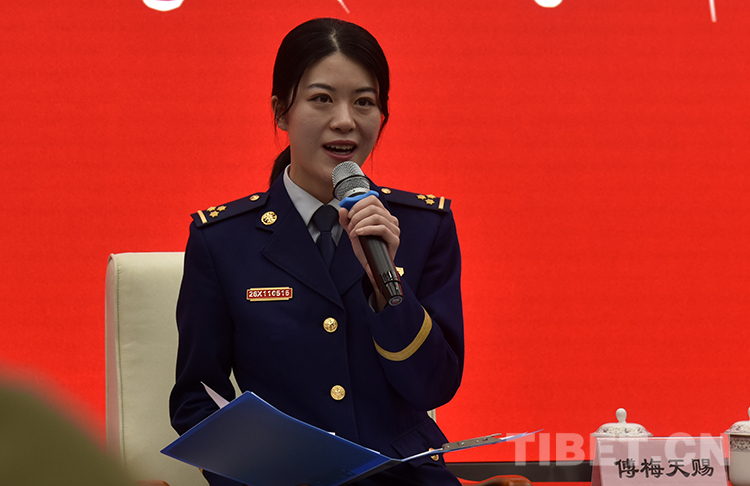 圖為拉薩市消防救援支隊布達拉宮消防救援站指導(dǎo)員傅梅天賜現(xiàn)場發(fā)言 攝影:王媛媛