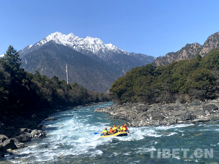 圖為愛好漂流的市民在林芝巴河體驗漂流