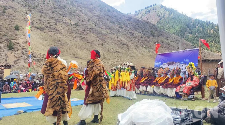此次《諾桑王子》的表演劇本,由演員們自發(fā)組織創(chuàng)作,保留了古老的唱腔藝術(shù)和服飾藝術(shù),在原創(chuàng)基礎(chǔ)上,添加了折嘎、昌都鍋莊、康巴特色體育競技等內(nèi)容。在保護(hù)與創(chuàng)新中傳承,造就了這座村落獨(dú)特的藏戲文化。