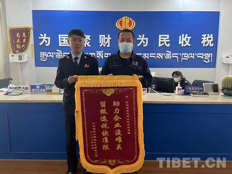 圖為國家稅務(wù)總局江孜縣稅務(wù)局收到轄區(qū)企業(yè)送來的錦旗