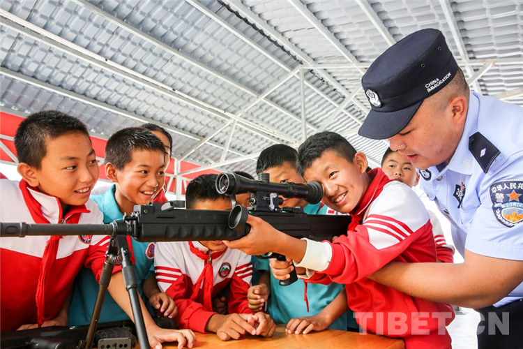 圖為背崩邊境派出所民警在執(zhí)勤點(diǎn)組織警營開放日活動(dòng)