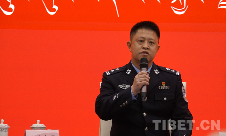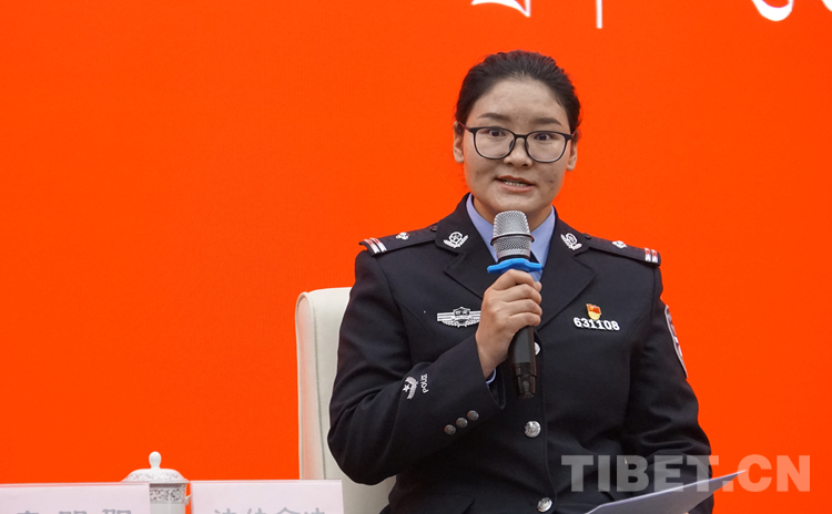圖為那曲市色尼區(qū)公安局紀(jì)檢監(jiān)察室主任達(dá)娃倉決分享青春擔(dān)當(dāng)故事 攝影:王媛媛