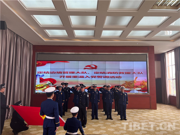 圖為定結(jié)邊境管理大隊(duì)、定結(jié)消防大隊(duì)開(kāi)展重溫入黨誓詞活動(dòng)