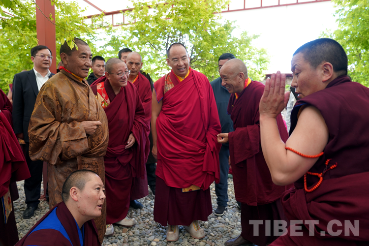班禪表示,今天來到學(xué)院看到無論是硬件上、軟件上,都功德具足、法喜圓滿。我想一切的外在條件都已經(jīng)萬事俱備,只需要我們?nèi)w師生奮發(fā)圖強,珍惜把握學(xué)習(xí)時光?!白8W(xué)院師生們健康長壽,用我們現(xiàn)有的人生為祖國、為民族、為中國特色社會主義的建設(shè)、為藏傳佛教中國化做出更多的貢獻。祝愿大家六時吉祥、十相自在、功德圓滿!”